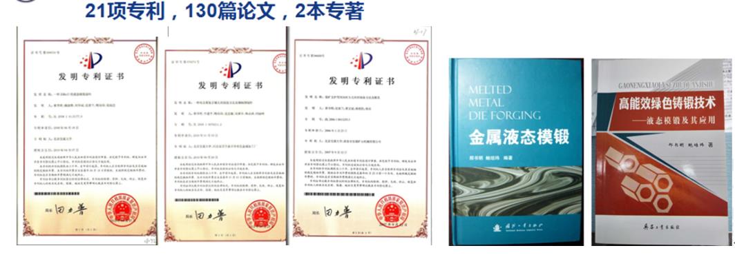 创新优势: 工艺结构适于液态模锻,盘形件,最适合液锻; 多热节,恰能发挥压力补缩的优势;质量与性能裕度大; 高压流变补缩,可以确保无收缩缺陷; 金属型高压快速冷却,可以显著细化铸态晶粒、实现同时凝固,提高均质性; 综合性能明显高于传统铸造产品,安全可靠性能高。 属于液态成形——便于成型,设备吨位小。 生产效率高:单机组小时产量16件(1吨/h). 工艺出品率高达95%以上。 科技成果: 编写了两本专著;21项专利,130篇论文,发明了钢铁材料液态模锻专用涂料,开发了十几种产品的液态模锻成套技术,发明了高铁制动盘流变挤压铸造(即液态模锻)技术。 |