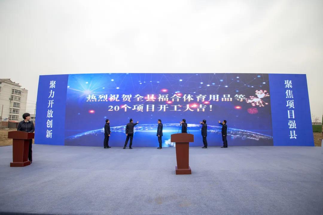 1月21日上午,县工业项目集中开工活动在我镇福合体育用品项目现场举行。县委书记唐敬讲话,县长吴冈玉主持,县人大常委会主任季晓春、县政协主席邱德兵等参加活动。